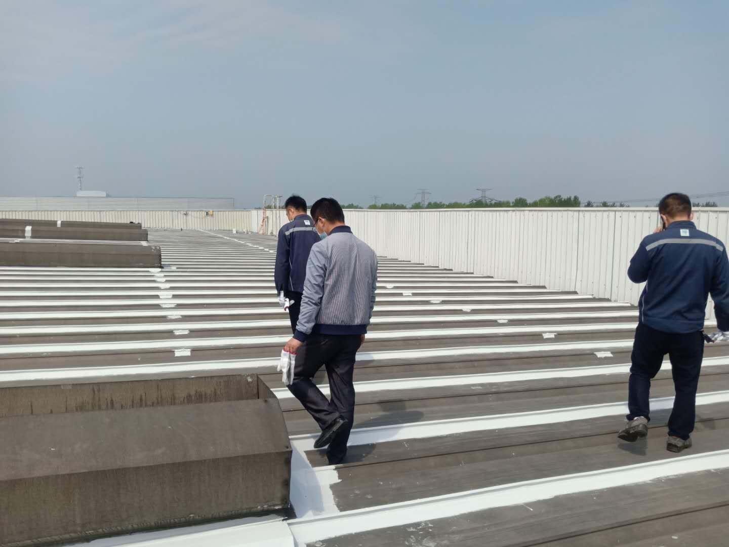 2020年公司決定對屋面進行定期維護保養。基于對美莎防水產品質量,以及專業服務的考慮,還是繼續讓美莎防水/上海榮拓實業來維護施工。對于屋面上有缺陷的部位重新進行防腐+防水維護,對于之前做過的36500米搭接縫,無需清除掉,只需重新再刷2遍美莎防水面涂即可。這樣就又能質保7年,延續了良好的使用狀況。