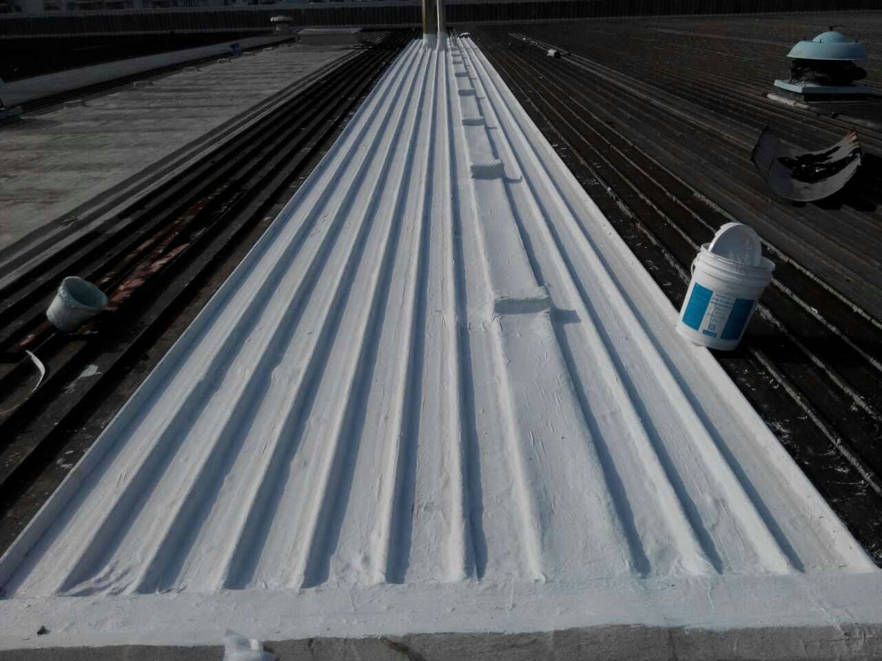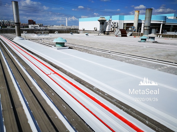 由于之前都是局部防水,2020年6-7月期間,屋面其他未做過防水的區域,有出現不同程度的滲漏水,導致油漆線車間機器停產的情況。為了徹底解決滲漏水問題,2020年8月份,油漆線車間,進行了整體防水維護(每條搭接縫、每個風機、采光板等),確保屋面長治久安,無漏水后顧之憂。