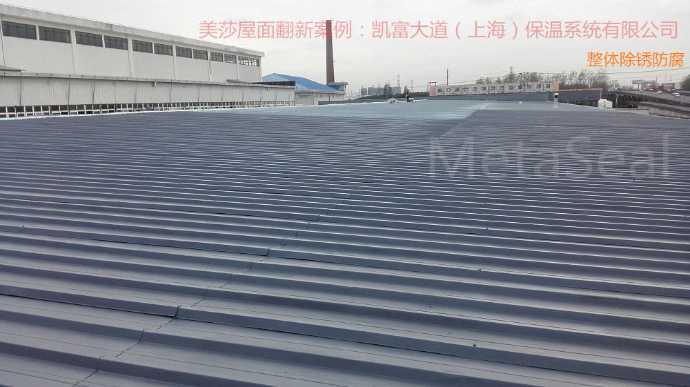 公司也考慮更換屋面板的施工方案,可是那樣會涉及到很多問題:生產車間停工、大吊機無法進入廠區、各種線管等都要調整位置等。后來采取了上海榮拓實業有限公司的美莎金屬屋面翻新體系,屋面板加固+打磨除銹+防腐+局部防水加固+整體噴涂保護涂料,在不影響企業正常生產的前提下,順利完成了屋面翻新任務,確保5年之內 不漏水 不銹蝕的要求,且能隔熱節能降溫,減少了大量的工業電費及支出。讓業主真正感受到物超所值,解決了一個大難題。