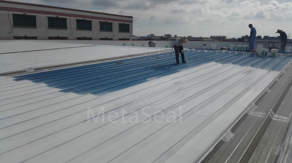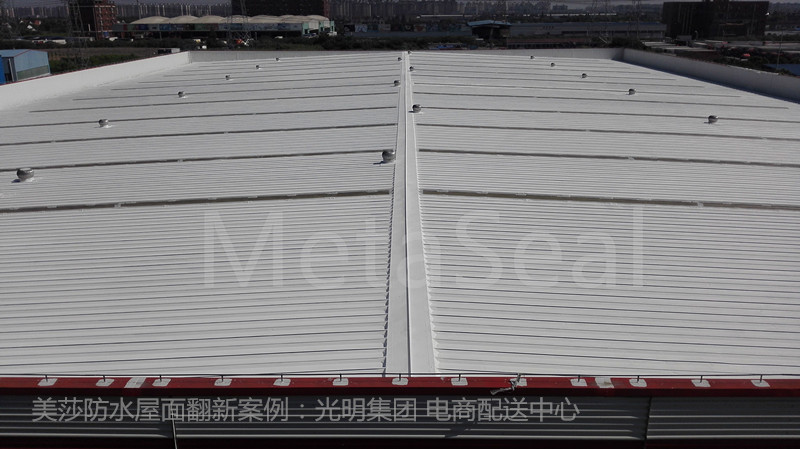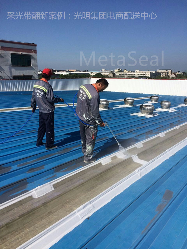 經過2輪招投標競選,業主最終選擇了上海榮拓實業有限公司的美莎金屬屋面翻新體系,將有滲漏水的屋脊、采光板、風機基座、天溝、避雷帶、山墻泛水、外立面高窗等部位進行防水維護加固;對于屋面銹蝕區域打磨除銹防腐;采光帶(透明)也采用美莎透明保護劑進行噴涂保護;屋面板整體噴涂美莎全能型保護涂料,達到:一次系統維護,十年內無后顧之憂。集屋面整修、防水加固、除銹防腐、隔熱節能于一體,真正物超所值,屋面系統維護保養。