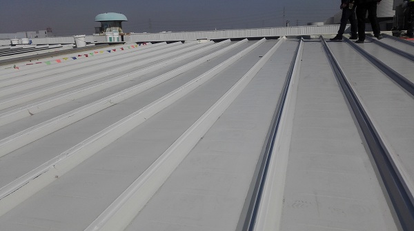 近幾年,光伏發電產業大行其道,各地政府及企業也紛紛上馬屋面光伏發電項目,不僅有利于企業自身電力供應,且能返售給國家電網,同時,綠色環保,充分發揮屋面閑置空間,利國利民,多贏局面。2016年,園區管理部門也將這80000平方米建筑屋面上光伏發電。眾所周知,彩鋼屋面很容易滲漏水,且此園區項目地產東海邊上,臺風暴雨時常光顧,而光伏板安裝后具有不可逆性,要持續利用15-20年時間,期間若有屋面漏水,那維修工作就非常麻煩了。