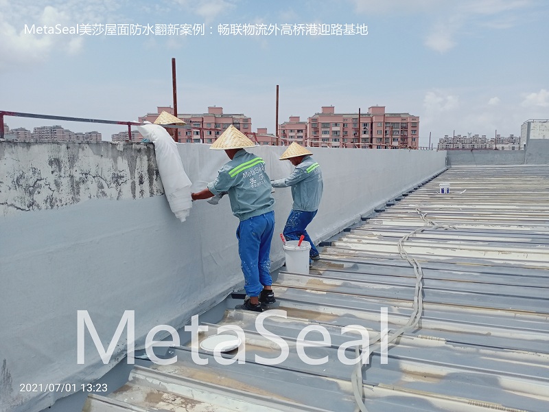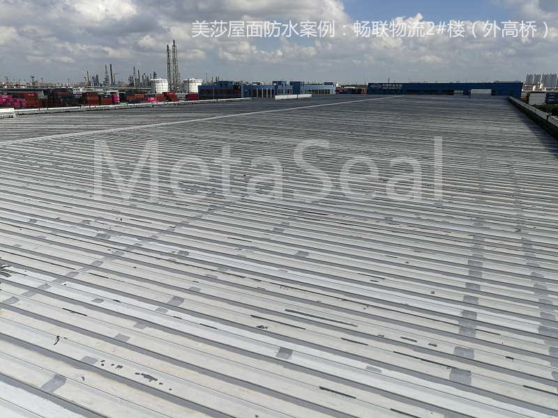 2018年,位于港迎路上的物流基地,2#樓也存在較多滲漏水問題,15000平方米彩鋼物流,采用美莎金屬屋面防水體系,將屋面上所有的搭接縫、釘子、SBS瀝青卷材覆蓋面積(無法鏟除)進行系統防水維護,經過幾次臺風暴雨的檢驗,滴水不漏,租戶和業主都很滿意。