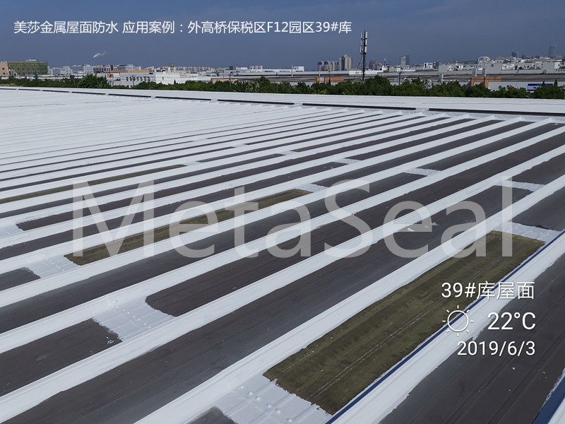 位于上海市外高橋保稅區內的F12園區39#倉庫,位于富特東二路,總面積6000多平方米,為單層彩鋼屋面結構。使用至今已10多年,彩鋼屋面出現了不同程度的滲漏水情況。