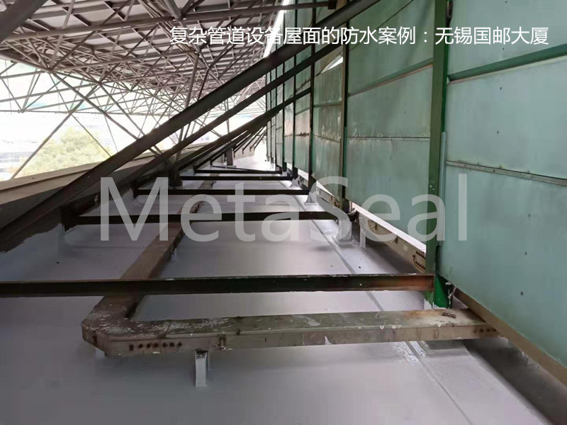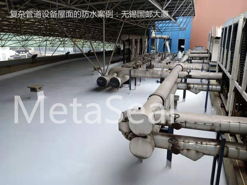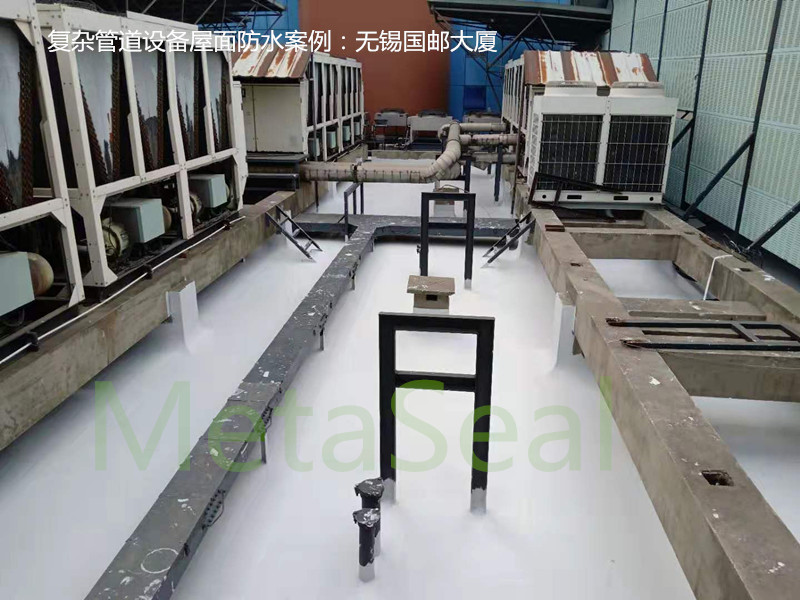 (1)屋面設備管線太多,且施工難度大,若采用SBS瀝青卷材/PVC防水卷材類,很難完全密封防水;采用美莎土建屋面防水體系,柔性涂膜型的防水體系,整體無縫施工,能徹底解決滲漏水問題;