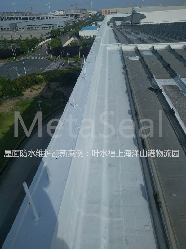 位于上海臨港自貿區的葉水福洋山(上海)有限公司,新加坡獨資物流企業,為兩棟立體庫,總計22000平方米。倉庫屋面為彩鋼板結構,使用十多年來,已出現非常多位置的滲漏水情況。經過嚴格的招投標流程,業主最終委托我們上海榮拓實業有限公司,對于2棟倉庫屋面進行系統地防水維修,包括彩鋼屋面防水、高窗防水補漏、土建辦公室屋面防水等工作,做到了專業化、管家式的服務。