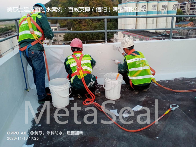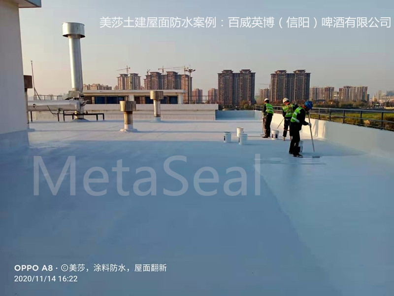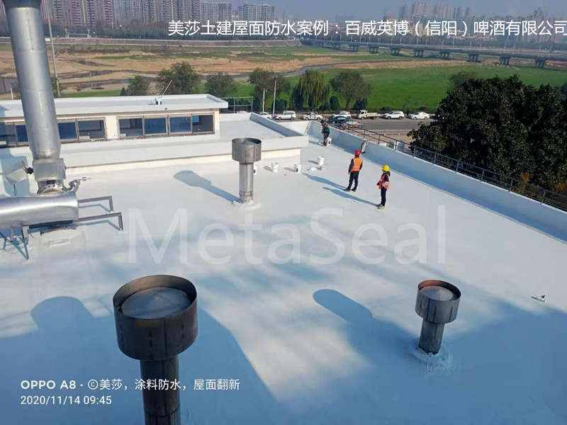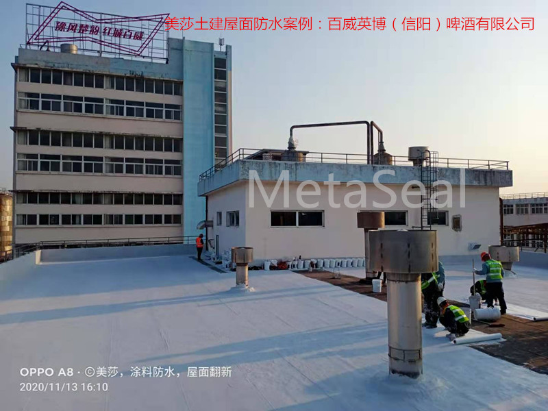 位于河南省信陽市的百威英博(信陽)啤酒有限公司,為百威啤酒集團的合資企業。部分廠房、辦公樓的土建屋面經常出現滲漏水問題,若采用傳統的SBS瀝青卷材,則3-4年就要翻新,且翻新的成本也一次比一次高。