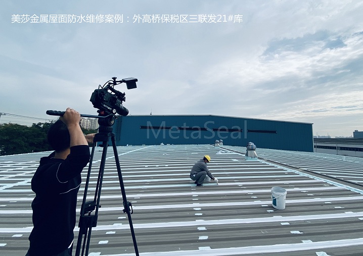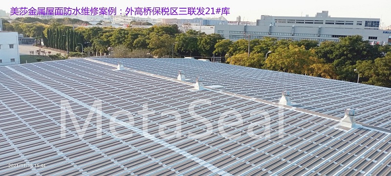 位于外高橋保稅區F6園區內的21#廠房,原為英格索蘭工廠,廠房定期裝修翻新過程中,屋面維護選用MetaSeal美莎金屬屋面防水體系,于2021年11月份進行了施工維修,屋面上所有的搭接縫、風機及釘子都進行了防水加固,讓整個庫區長期免受漏水問題困擾。
