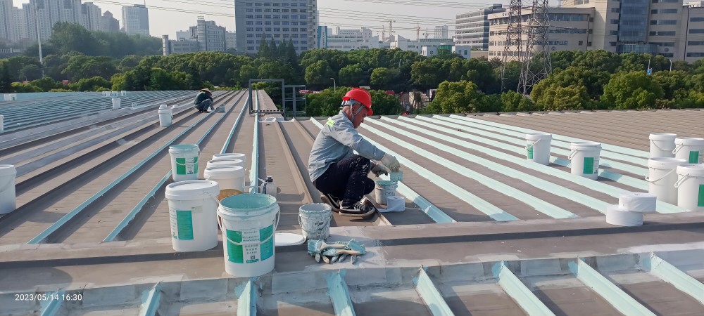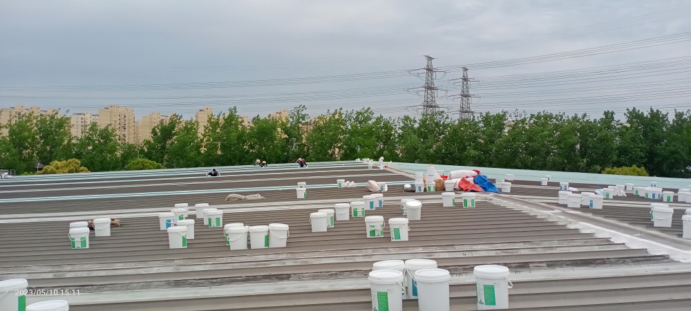 通過嚴格的招投標流程,最終選用MetaSeal美莎金屬屋面防水體系,對屋面(含雨棚)的所有搭接縫、釘子,進行防水加固,”三涂一布“標準工序。