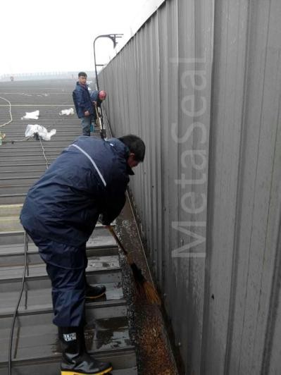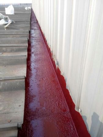 (1)天溝內初步清除掉銹塊、沉沙及各類垃圾,晾干后銹塊敲除,然后進行打磨除銹,及時涂上鋼結構專用的防腐油漆;
