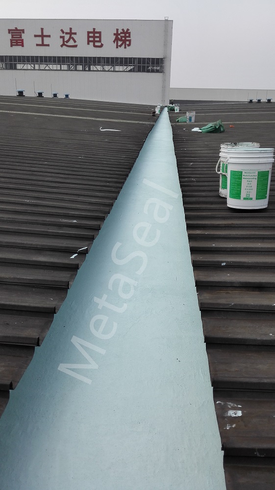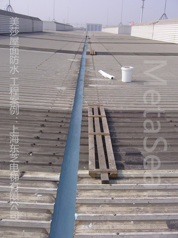 (4)若有天溝銹蝕爛穿窟窿的情況,建議內襯新的天溝,或者在天溝內打磨除銹防腐后,整體鋪設美莎彩鋼屋面防水體系;