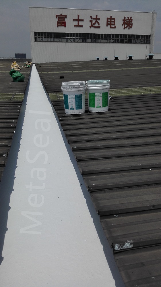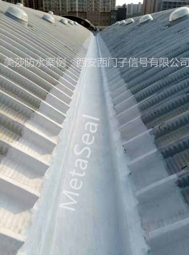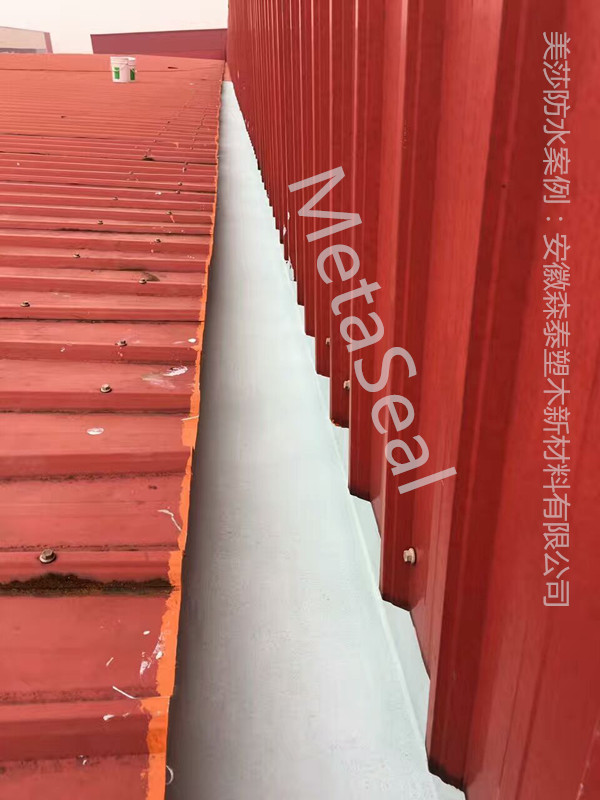 通常,天溝內(nèi)采取整體防水整鋪的方法,確保天溝能在10年內(nèi)無需再讓人擔(dān)憂或操心。而天溝又地處整個(gè)屋面體系的最低點(diǎn),施工期間若有雨水或晚間露水,則有可能會對防水作業(yè)造成破壞,乃至重新來過。因此,在外界溫度20°以上的季節(jié)里,則要求防水作業(yè)需要在一天內(nèi)一氣呵成,確保施工品質(zhì)。理想的施工狀況是:早晨待屋面板上沒有露水那一刻開始,集中所有的工人清掃干凈天溝,用抹布拖/擦干,3人一組,刷美莎防水底涂+防水布+底涂,到中午施工完成,下午不遲于2點(diǎn)開始刷防水面涂,要確保在4點(diǎn)鐘完成工作,讓天溝涂層有3 - 4個(gè)小時(shí)的足夠干燥時(shí)間(在晚上下露水或下雨前)。要確保天溝區(qū)域,防水作業(yè)干一段成一段。若天溝非常長而人手少的情況下,或者在下雨前搶工期的情況下,則用筑壩的方法分成幾段施工。