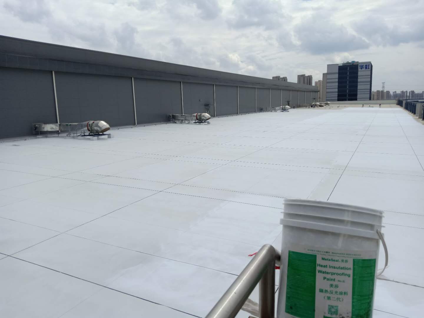 既使后續因大屋面熱脹冷縮、找平層內開裂等存在缺陷,由于美莎隔熱反光涂料具有非常好的高彈性(延伸率高)和附著力,整體無縫封閉,能讓大面積的屋面得以長期的良好保護。